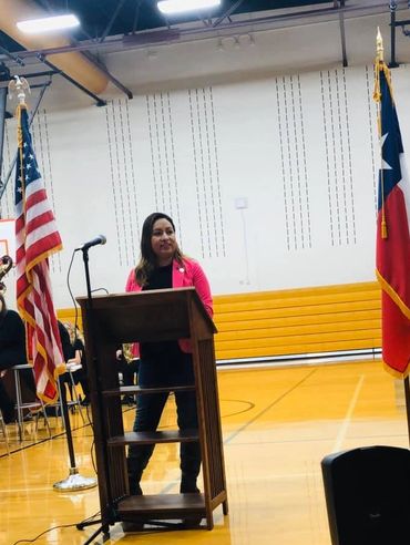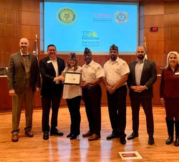 Pictured from Left to Right: Officer of the Day Megan Lescallett, Past District 1 Commander Ray Richardson, Commander Shenna Lawless, VFW Members James Trombley and Shane Hannaford at Collin College Frisco Preston Ridge Campus